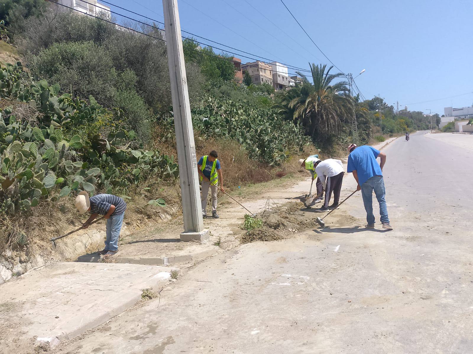 الصناعية و تقليع الأعشاب و رفع الأتربة بمقبرة سيدي مروان والعمل متواصلليشمل كامل المنطقة البلدية إن شاء الله