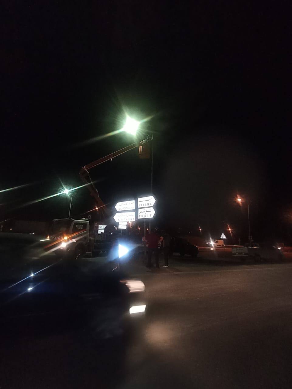 تدخل ليلي لفريق التنوير العمومي لبلدية قلعة الأندلس على مستوى محول البكري -الجيان تونس سيتي